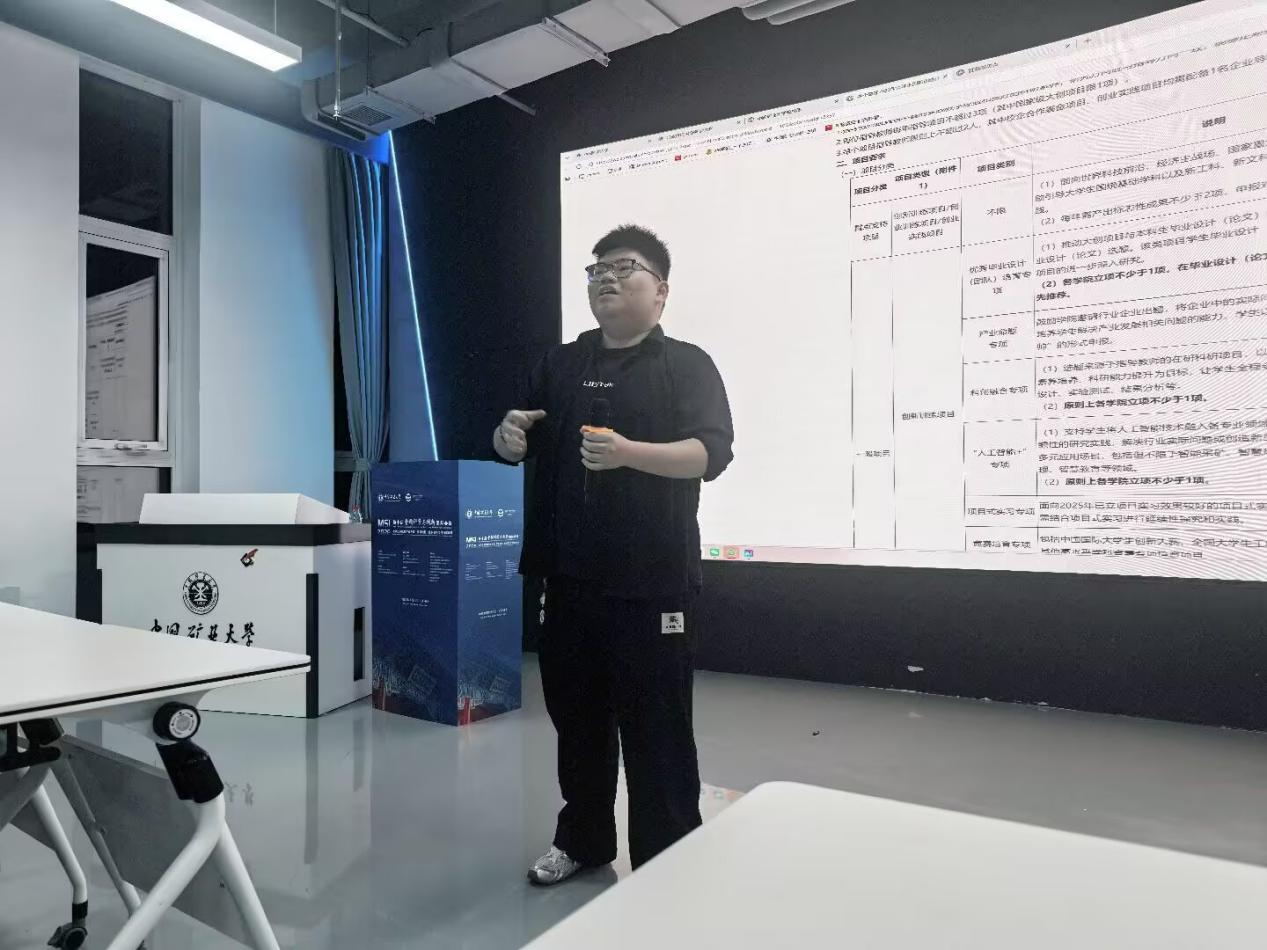 会议下半场,由INVC实验室负责人、机械工程2023-6班的梁祖城同学接棒分享,针对大创项目进行了深度的申报指导与经验传承。梁祖城从“大创是什么”这一基础概念切入,层层递进地带领同学们解构了大创项目从构思酝酿到最终立项答辩的全生命周期。他结合自身丰富的实战与管理经验,深入浅出地分享了从现实需求中提炼高质量选题的方法、突破专业壁垒组建高效团队的策略,以及根据研究方向精准匹配指导老师的实用技巧。为了让同学们更精准地把握今年的申报风向,他结合了最新的大创申报要求,逐一拆解了创新训练项目、创业训练项目等不同类型项目的侧重点与难度层级,帮助大家根据自身实力进行合理定位。此外,他还详细分享了答辩现场的逻辑构建策略,极大地提升了同学们的申报底气与信心。